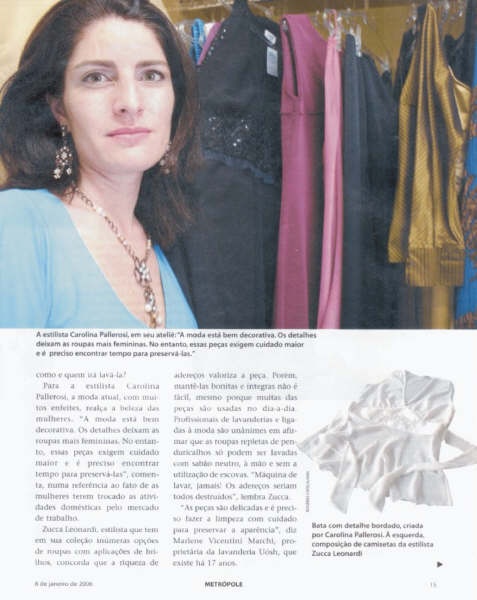 Das coleções de roupas de boneca à Faculdade Santa Marcelina, Carolina graduou-se em Moda no ano de 1993. Vários outros cursos como o de Marie Ruckie – Studio Berçot pela Casa Rhodia, palestras, viagens, eventos, completam sua bagagem e formação. Desde 1996 desenvolve um estilo inconfundível.Um trabalho autoral e impecável em criação e confecção.